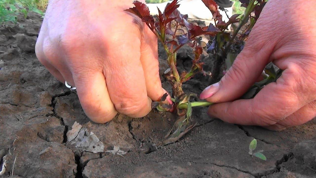 Преди пъпка разсадът се напоява добре. Преди инокулация изкопайте нарастващия запас от шипка. Не е необходимо да се изкопава предварително, тъй като деликатната кора бързо изсъхва и се отделя лошо. Кореновата шийка се освобождава и се търка със салфетка, докато кората стане лека. За удобство можете напълно да изкопаете разсад от шипка.