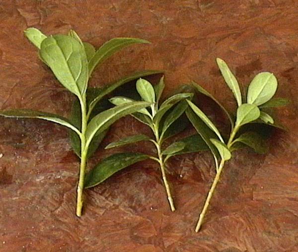 - За да бъдат насочени хранителните вещества към образуването на корени, половината от листата, разположени на върха на резника, се отрязват, долните се отстраняват напълно.