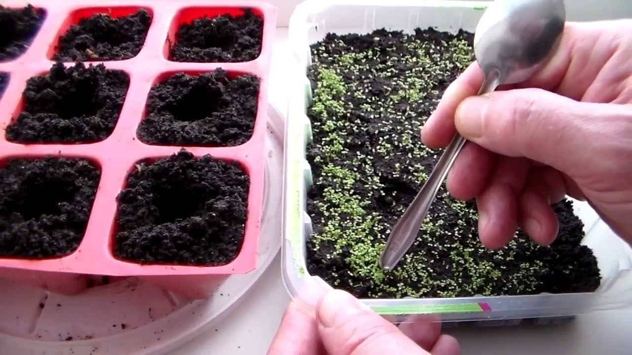 Веднага щом се появят кълнове, можете да трансплантирате семето в контейнер, пълен с плодородна почва и малко количество: