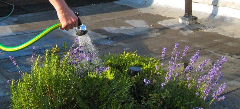 Лавандулата не понася прекомерна влага в почвата, както и суша. Поради това се препоръчва да се напоява растението веднага щом горният слой на почвата изсъхне. Напоителната система е инсталирана така, че капките вода да влязат в самото растение.