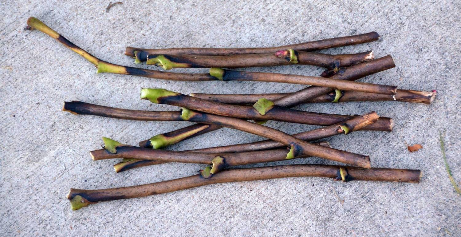 - Изрязаните стъбла се нарязват на парчета със секатор, като всеки трябва да има междувъзлия.
