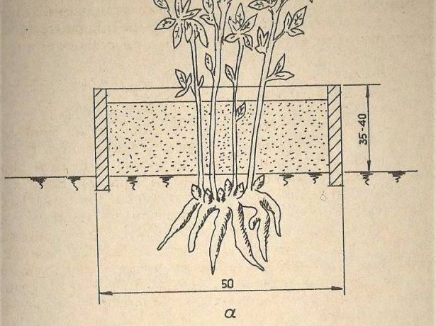 Необходимо е да се оголят подземните пъпки и да се затвори коренището с кутия без дъно. Височината му трябва да бъде от 35 до 45 см. В кутията се изсипва смес от 3 части пръст и се вземат 1 част торф и пясък. Слой - от 8 до 10 см.
