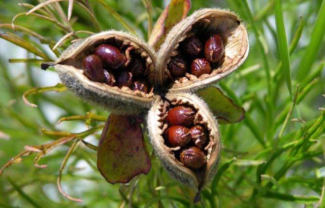 Семенната капсула на божура е с форма на звезда и е боядисана в бледозелен цвят. За да получите семена, трябва да оставите цвете върху растението. Посевен материал ще се формира около август. Семената се събират и съхраняват в хладилник.