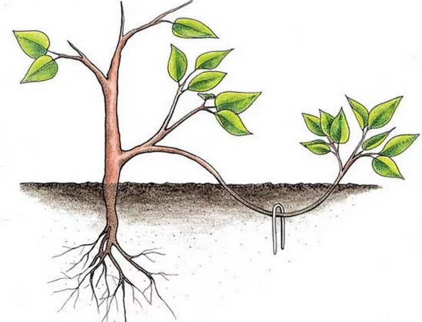 Удобно е да се размножава възрастен храст чрез наслояване на издънки през пролетта. Под 2-3 силни издънки се прави бразда на дълбочина 5 см. Издънките се огъват към земята, фиксират се със скоби, покриват се с пръст и се поливат интензивно. Препоръчва се подхранването на резниците с минерални торове няколко пъти в месеца, така че да се вкоренят до есента. След това слоевете се отделят от основния храст и се засаждат. За райони с измръзване слоевете се засаждат първо в саксии, а през пролетта се трансплантират на открито.