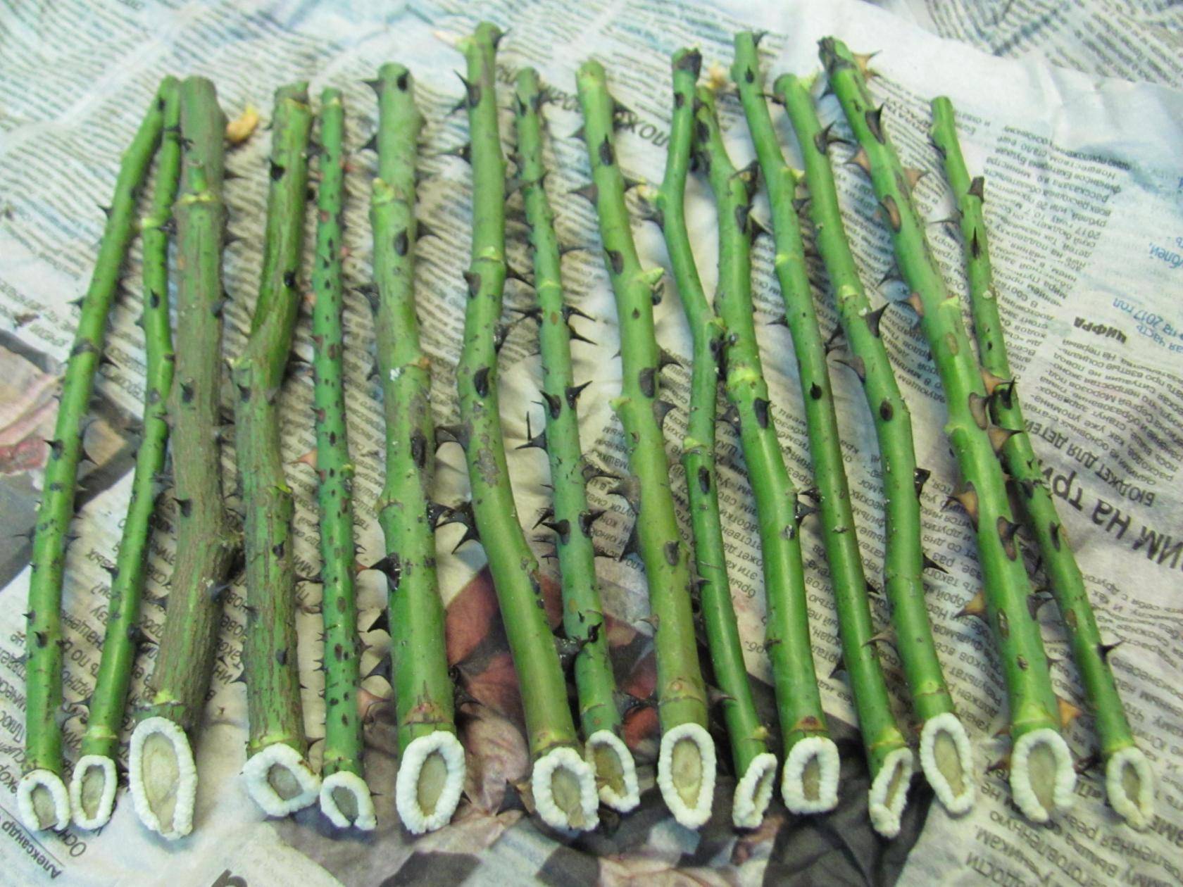 Можете също така да изберете стрък през лятото, най-важното е, че тръните на него се отчупват без усилие. По-добре е да започнете процедурата в началото на сезона.