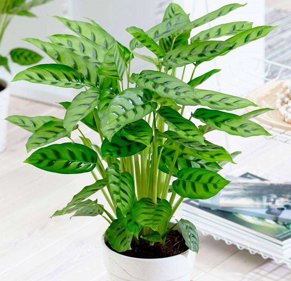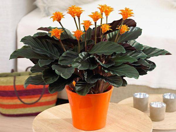 Стайното цвете Calathea, принадлежащо към семейство Марантови, е известно със своите необичайно красиви листа и живописни съцветия. Името на растението идва от древногръцката дума "Калатос", която в превод на руски означава "кошница" (в древността кошниците са тъкани от кората на растението).