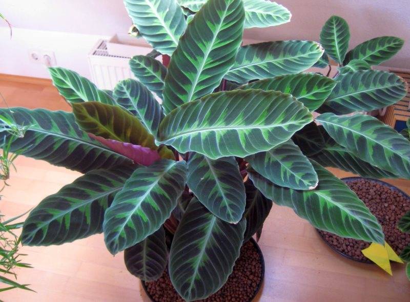 Височината на растението може да достигне 85-90 см. Само опитни градинари могат да отглеждат това взискателно стайно цвете. Трудностите при поддържането на калатея се крият в системното поливане, подхранването и непрекъснатото осветление (до 14-17 часа на ден).