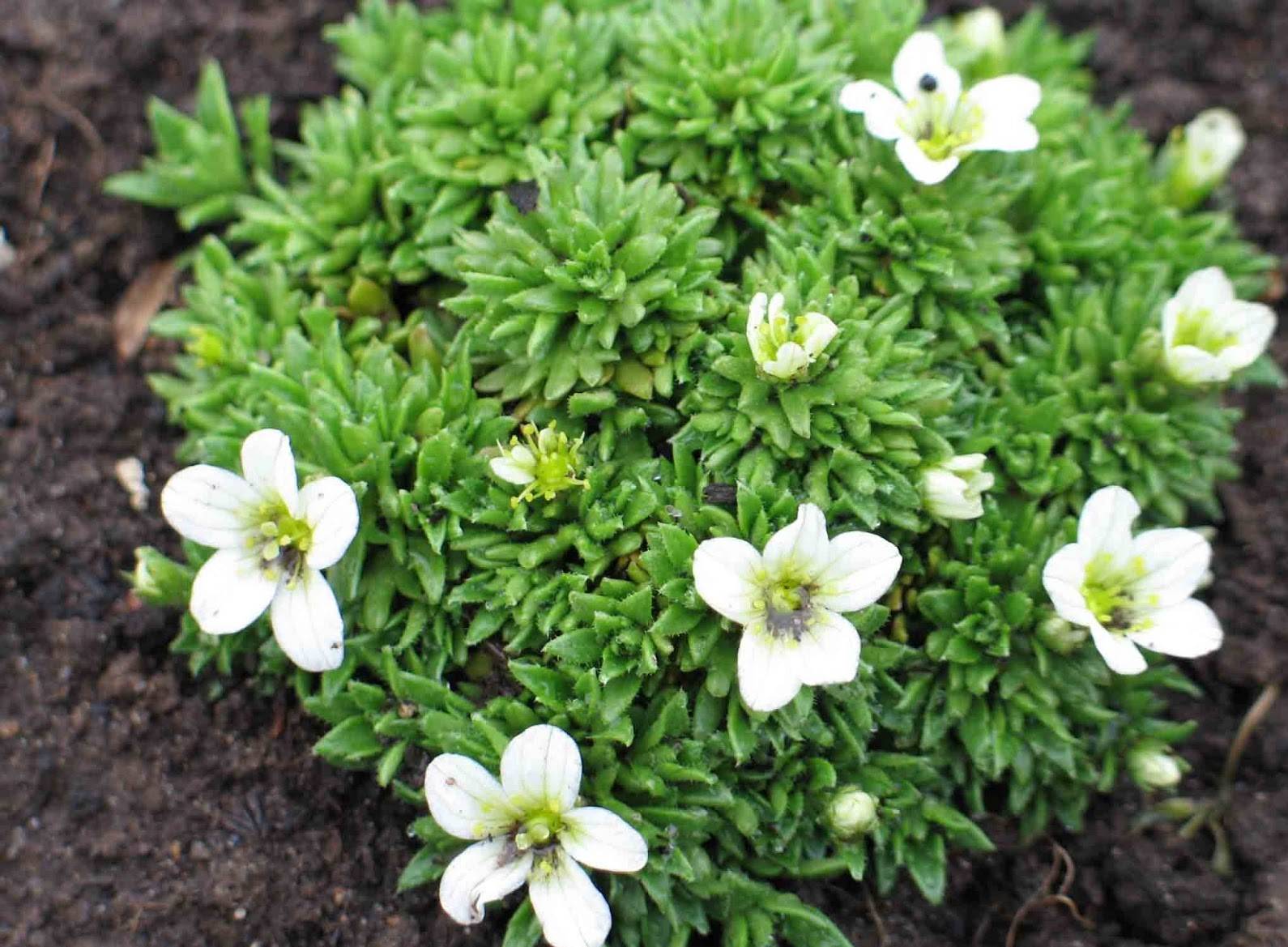 Saxifrage изисква умерено влажна почва.За да придадат на цветето представителен вид, производителите на цветя препоръчват да се пръскат листата в сухо време.