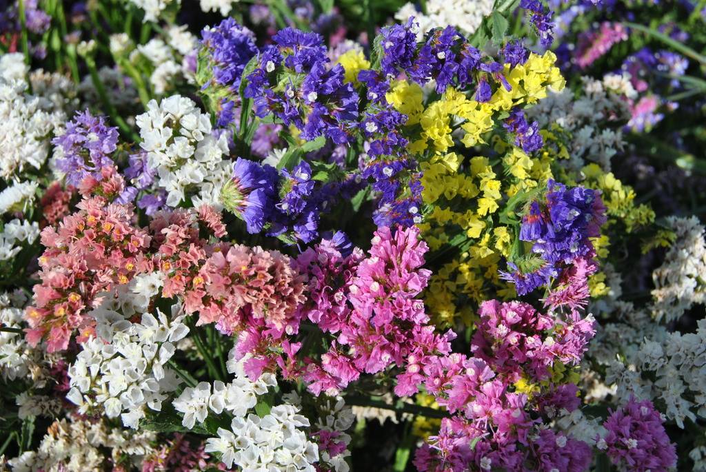 - Смесени хайбридове. Смес от средно големи сортове с назъбени статици с височина до 45 см. Венците от цветя в него са боядисани в различни нюанси на лилаво, бяло, жълто, синьо и розово.