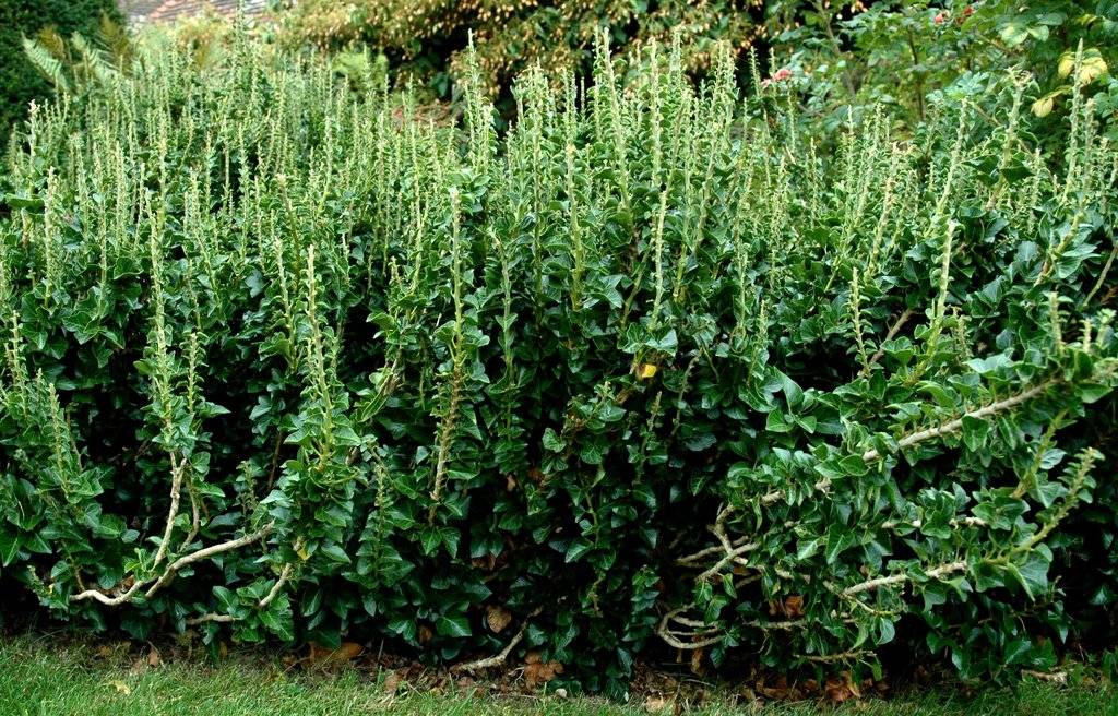 Хедера рядко цъфти, когато достигне 10-12 годишна възраст. Цветовете са малки, незабележими. Те са зеленикаво-бели на цвят с неприятна миризма. Няма декоративни свойства.