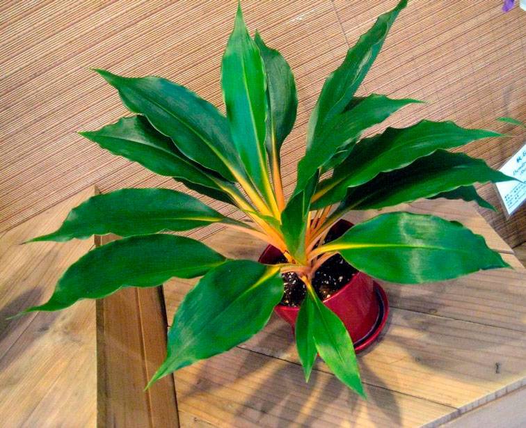 Листата на този сорт са по-широки от тези на останалите. Тъмнозелената листна плоча е контрастно засенчена с оранжева дръжка и жилка. Съцветието е пикатно, външно подобно на ухото.