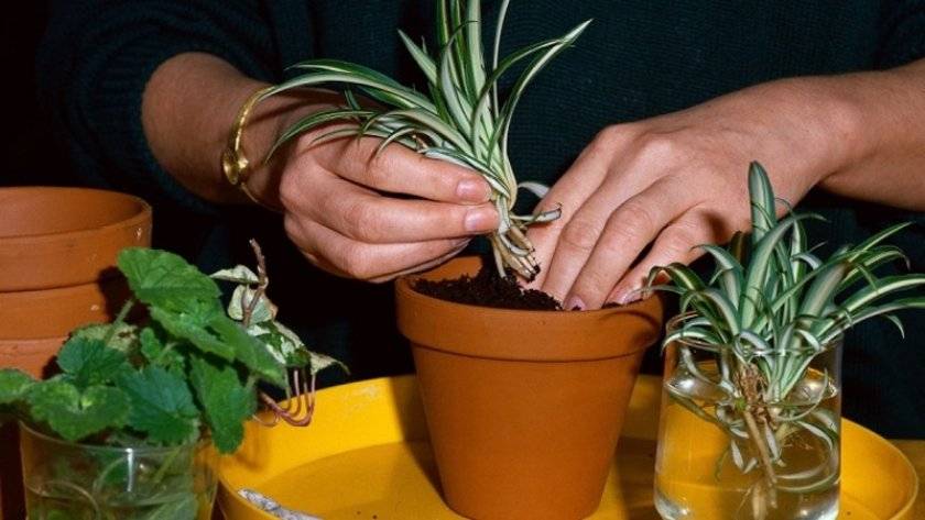 - Трансплантирайте хлорофитум в нова почва.