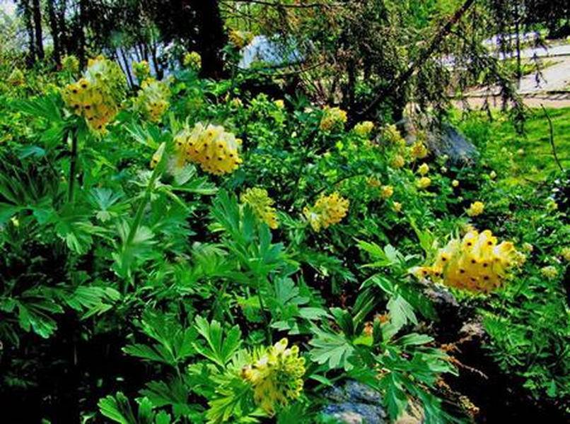 - Хибрид от коридалис (Канарски пера). Синьозелени листни плочи, вертикално растящи съцветия с цвят на канарче. Обича хладно време.