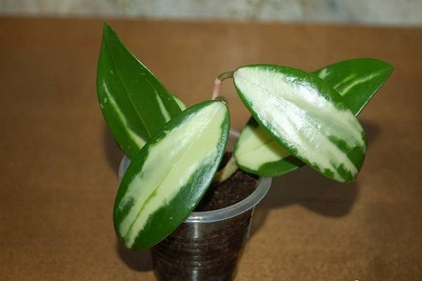 Листата са дебели, напомнят на представители на семейство Сукулентни, дълги до 8 см и широки до 5 см. Те са овални в наситен зелен цвят със заострен край. Повърхността на младата зеленина е лъскава, с възрастта блясъкът затъмнява. Листовете са зелени на цвят с различни добавки: петна, ивици, вени, цветови преходи по краищата.