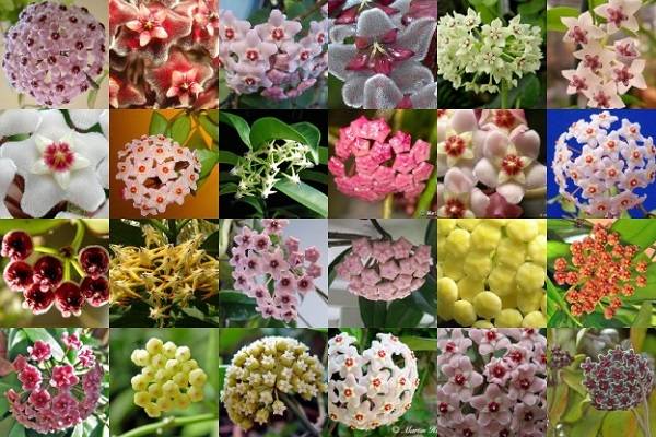 Другото име на Хоя е „порцеланово цвете“ заради своята красота и изящество. Вътрешният бръшлян има повече от 40 разновидности, а има още повече разновидности. Флористи отглеждат някои от тях, които са описани по-долу.