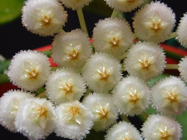 Хоя Ваети е филипински храстовиден вид с червени пухкави помпони от цветя, върху които изгрява звезда от тичинки. Мирише на естествен цветен мед.