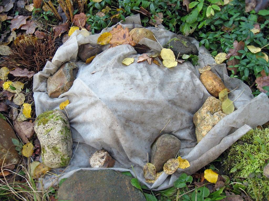 - След установяване на стабилна студена температура, покрийте насажденията със селскостопанско платно, смачквайки материала с тежести.
