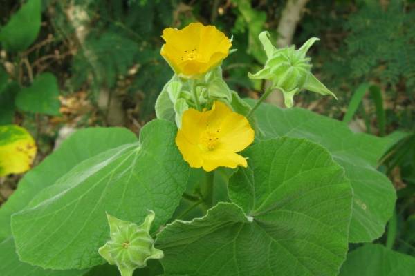 Храстът се характеризира с къси и меки стъбла. Листата сърцевидни с 3-6 дяла назъбени по ръба. Плочите не са космат, по границите са разположени неравномерни бели петна.От листните синуси излизат дълги дръжки, върху които са локализирани камбановидни пъпки със златист венче, украсени с червеникави жилки. Пъпките цъфтят от август до септември.