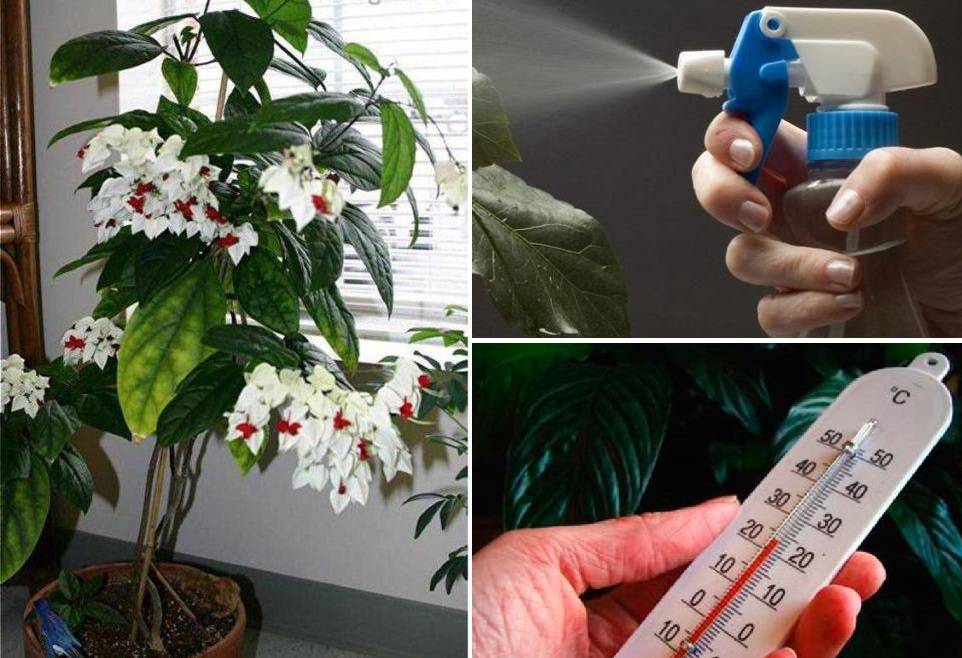 В допълнение към пръскането, което е толкова необходимо за клеродендрума, препоръчително е да поддържате достатъчно ниво на влажност в помещението, където се намира. За да направите това, можете да използвате съд с вода, който се поставя до цветето. Или закупете електрически овлажнител. През зимата можете да закачите влажна кърпа върху горещите радиатори.