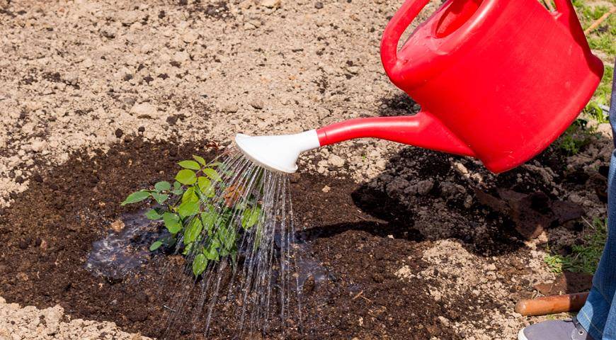 - След засаждането на храста в почвата, почвата се трамбова и се полива обилно.