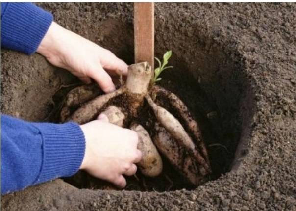 Дълбочината на ямата трябва да бъде от 30 см, смес от компост, минерални торове в равни части се излива на дъното. Разсадът се поставя в ямата, разпространявайки корените.