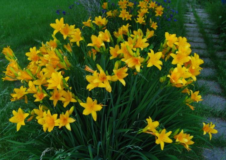 - Много ранни растения, цъфтящи от май до юни, те включват жълтия лилейник, сорта Stella de oro, известният лилейник, чийто период на цъфтеж се простира през лятото.