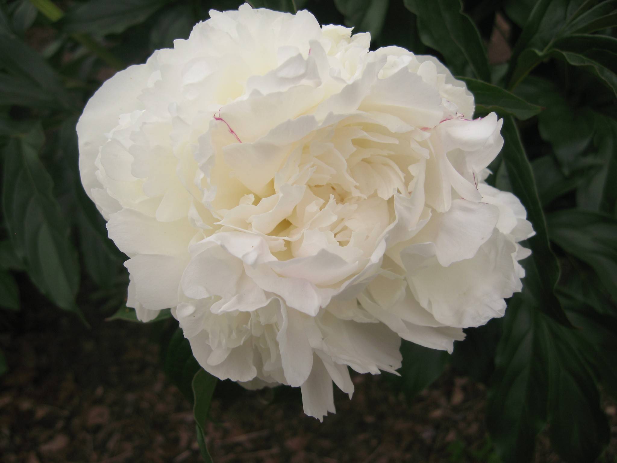Компактен храст с тъмнозелена голяма зеленина с височина до 80 см. Цветовете са бели кремави, когато цъфтят, впоследствие стават чисто бели с малки червени петна по вътрешните венчелистчета. Диаметърът на пъпката е 18 cm.