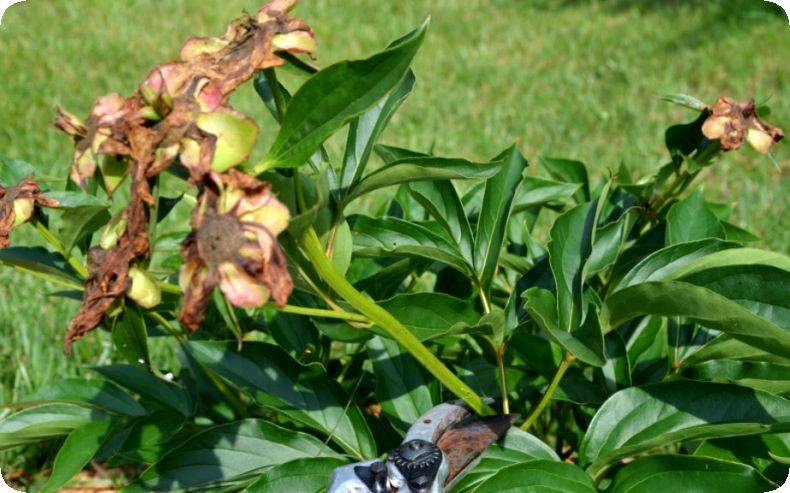 Сезонът на божурите рано или късно, но свършва. Не ги оставяйте едновременно и спрете да се грижите. Те се нуждаят от грижи, след като пъпките избледняват не по-малко, отколкото по време на образуването на пъпките.