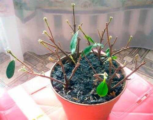 Следващата резитба се случва, когато растението се прехвърли на мястото за зимуване. В този момент се отстраняват стари, повредени издънки, както и пресни, които не са част от цялостния състав.