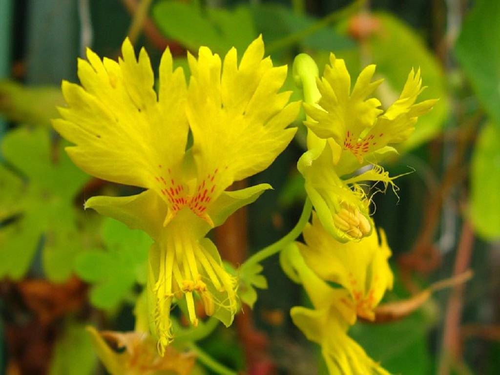Сортът Canary Creeper се различава по формата на пъпките. Двете горни венчелистчета са по-големи и насочени нагоре, а трите долни са плетени заедно. Следователно жълтите листенца на цветето наподобяват крилата на канарче. Оттук и името.