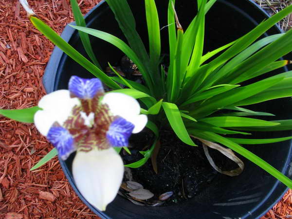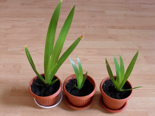 По-добре е да се вземат глинени саксии, не високи, тъй като корените на ириса са разположени в горната част на почвата. На дъното на дренажната саксия се полага слой експандирана глина, след това подготвената почва.