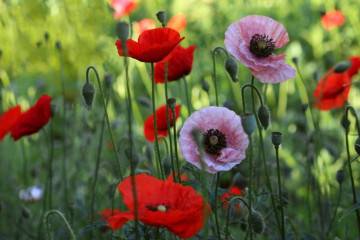 Макът е истинска градинска декорация, има много нюанси на червено, розово, оранжево, жълто и ...