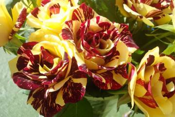 Simsalabim (KORsimsala) е най-необичайната роза. Никога не се знае какъв цвят ще зарадва следващата пъпка ...