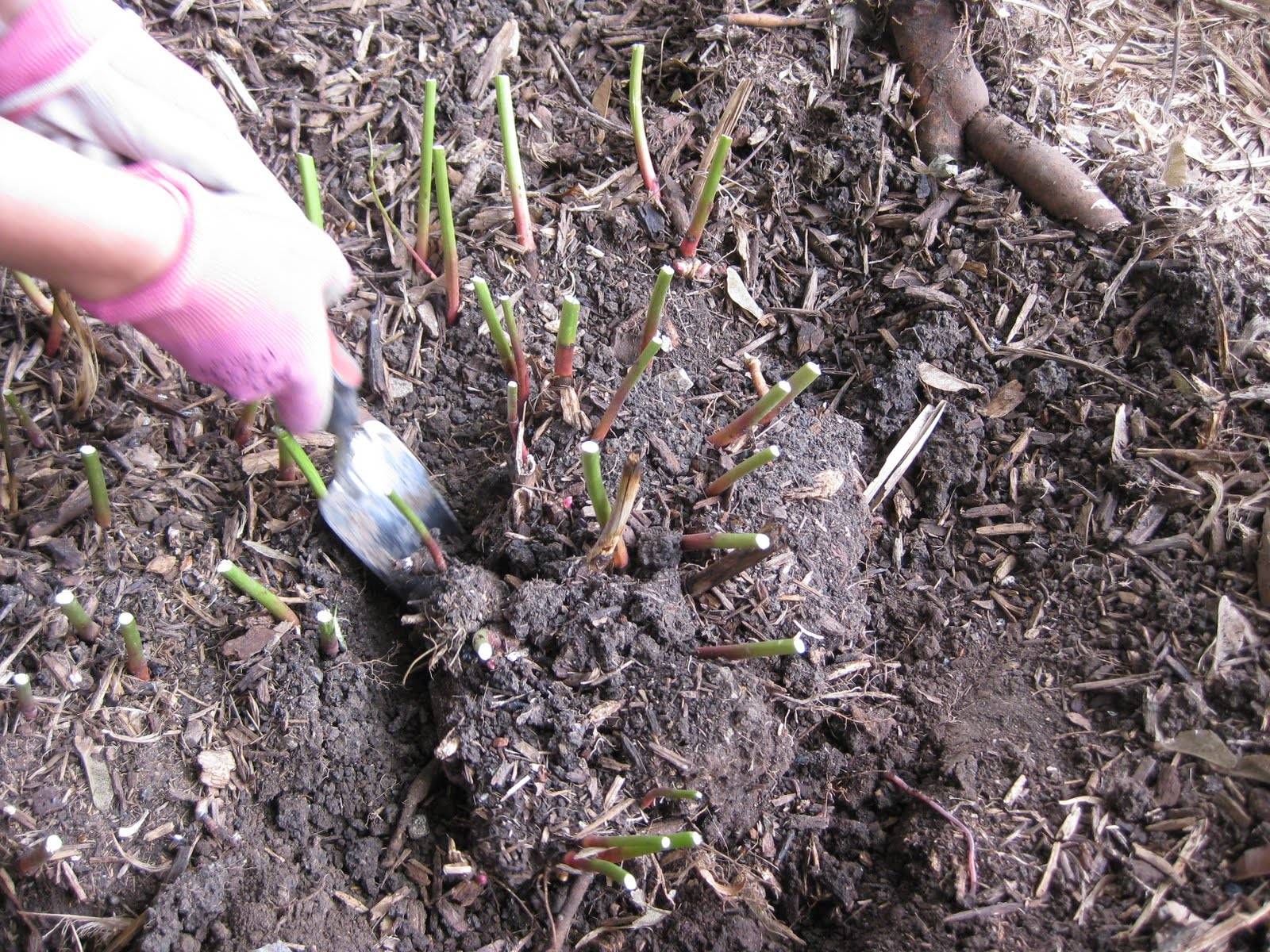 - Резниците се засаждат в подготвеното легло на разстояние 15 см един от друг.