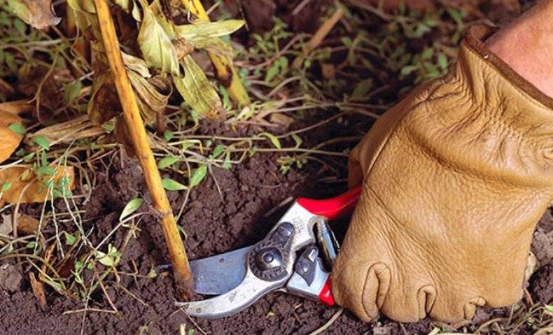 Надземната част се отрязва в края на есента след полагане на леторастите. Процедурата се извършва с остър, дезинфекциран секатор. Ранното подрязване може да навреди на растението: кореновата система няма да получи достатъчно хранителни вещества, които се транспортират от издънките.