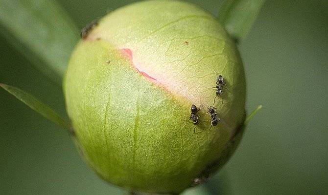 Насекоми, които увреждат божурите: мравки, листни въшки, трипси. Те се отърват от тях, като напръскат храстите със сапунена вода. Ако има твърде много вредители, се използват инсектициди.