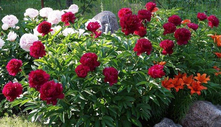 Peony Command Performance е високо растение, така че е по-добре да изберете ниско растящи и средно големи култури като съседи. Обемен храст ще изглежда страхотно като централна фигура на цветна градина.
