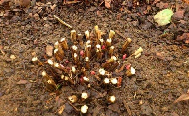 - Коренището е разделено на максимален брой малки части от 1-3 см, всяка от които трябва да има 1 корен и 1 коренова пъпка.