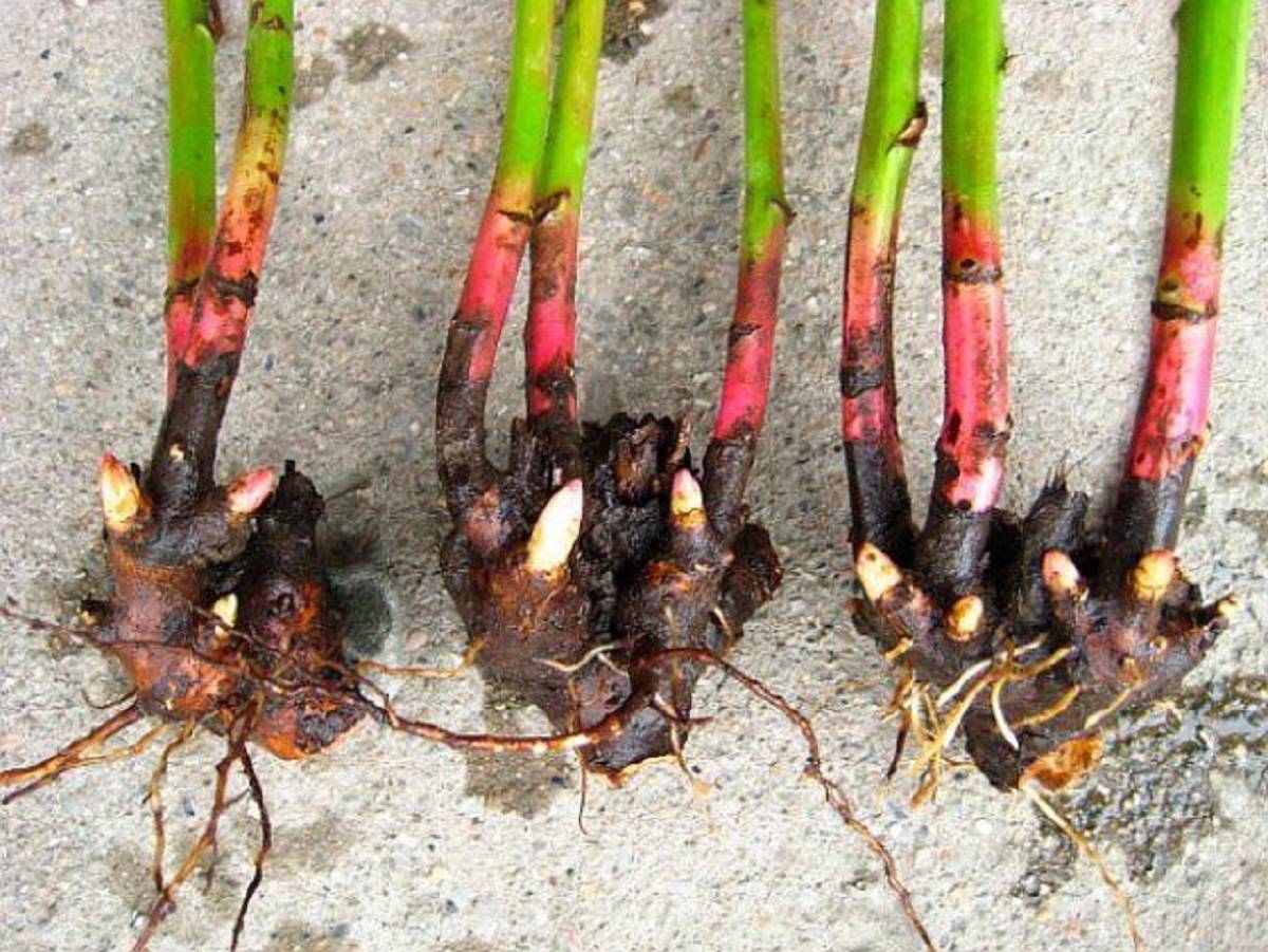 - Разделението за засаждане ще бъде възпрепятствано в ямата, задълбочавайки пъпките не повече от 5 см и внимателно я поръсете със земя.