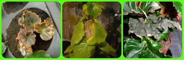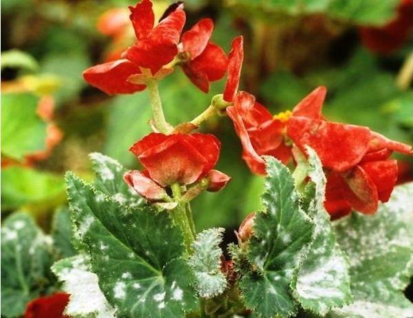 Най-често при отглеждане на бегонии можете да срещнете заболявания като сиво гниене (плесен), гниене на черни корени, бактериално увяхване, брашнеста мана.