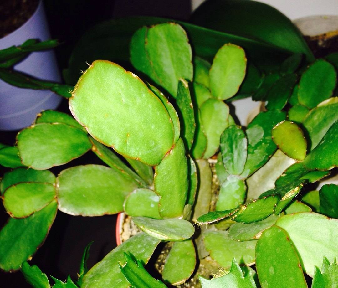 За това защо цветето декабрист не цъфти, когато си тръгва у дома, то ще ви уведоми за състоянието на корените му. Когато влагата застоява в почвата, започва загниването на кореновата система и отмирането на храста. Растежът се забавя, храстът изсъхва, зеленината потъмнява, сегментите и пъпките падат. Ако стартирате проблема, в основата на стъблата ще започне почерняване и плесен. Декабристът не само може да цъфти, но просто да нарасне.
