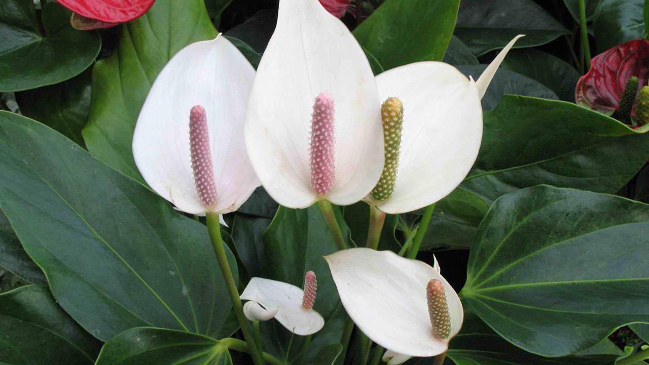 - спатифилумите с червени и розови прицветници също са много известни, те принадлежат към семейство Ароидни, общото им име е антуриум.