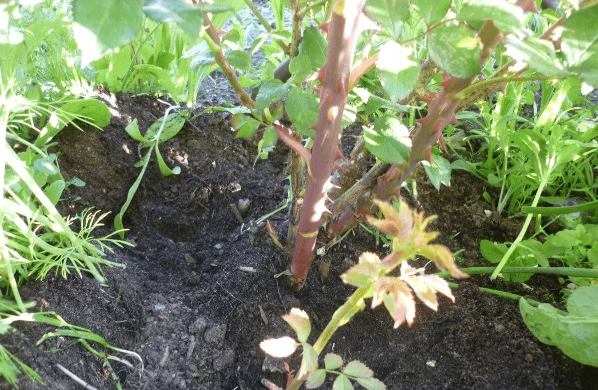 - ако засаждането е извършено в нарушение на приетите норми за този вид растения. Мястото за ваксинация трябва да се задълбочи. Ако това не бъде направено, потомъкът ще отслабне, ще бъде изместен от издънките на естествено по-силната дива роза.Понякога този ефект се наблюдава, ако растението не се е сгушило и не е покрило правилно през зимата. По-деликатна роза замръзва, а дивата роза оцелява и през пролетта дава нови издънки, вече лишени от декоративни свойства.