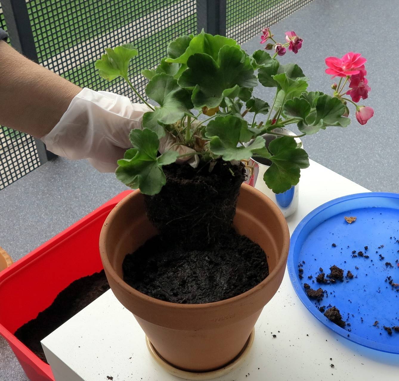 За да се помогне на растението да се справи с проблема, е необходимо да се установи причината за зачервяването. Първата стъпка е да разгледате отблизо растението и земната кома. Може да се наложи да се трансплантира здравецът в друга саксия, затова е по-добре да се подготви предварително (за възрастно растение се взема саксия със същия размер, а за младо - с няколко сантиметра по-голяма). Ще са необходими и нови земя и дренаж.