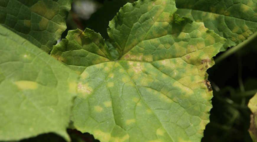 Пероноспорозата е гъбично заболяване, което се появява в резултат на преовлажняване на въздуха. Допълнително условие е висока температура на въздуха - 18-20 ° C. По плочите се образуват мазни петна, които след това почерняват, което води до деформация на плочата.