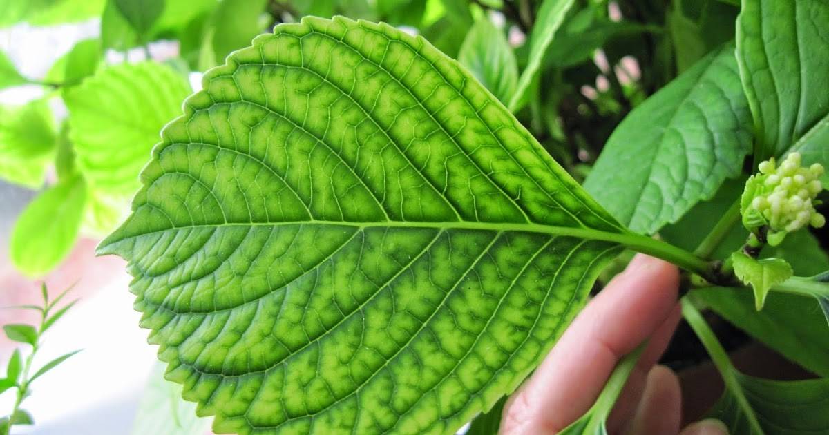 Хлорозата е една от причините хортензията да променя цвета на листата си, докато вените остават зелени. Това заболяване възниква поради поливане с твърда вода, която съдържа вар.