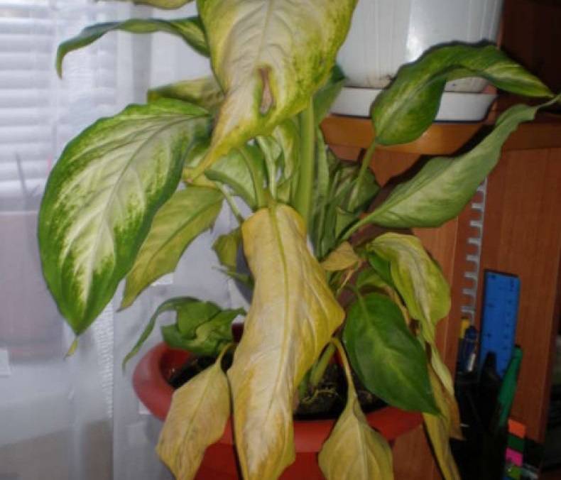 Защо листата на дифенбахия пожълтяват - причини