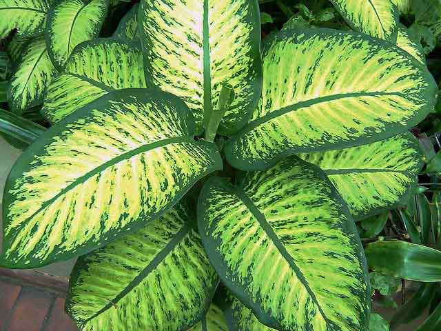 Без резки промени в температурата листните плочи на дифенбахия ще изглеждат здрави по всяко време на годината.