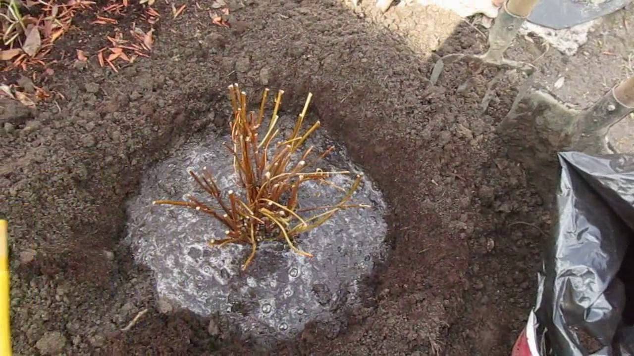 За младите разсад размерът на ямата за засаждане трябва да бъде 40x40, за многогодишните храсти - 50x50. Всяка дупка се запълва със смес от пръст и торове, богати на минерали. При младите разсад се изрязват удължени корени и се подрязват издънките и сухите съцветия (ако храстът е стар). От почвата се образува хълм, върху който се намира разсадът, а корените се изправят. Дупката е покрита с остатъците от почвата, без да покрива кореновата шийка на храста. Извършва се обилно поливане, почвата се трамбова и мулчира с дървени стърготини или дървесна кора.