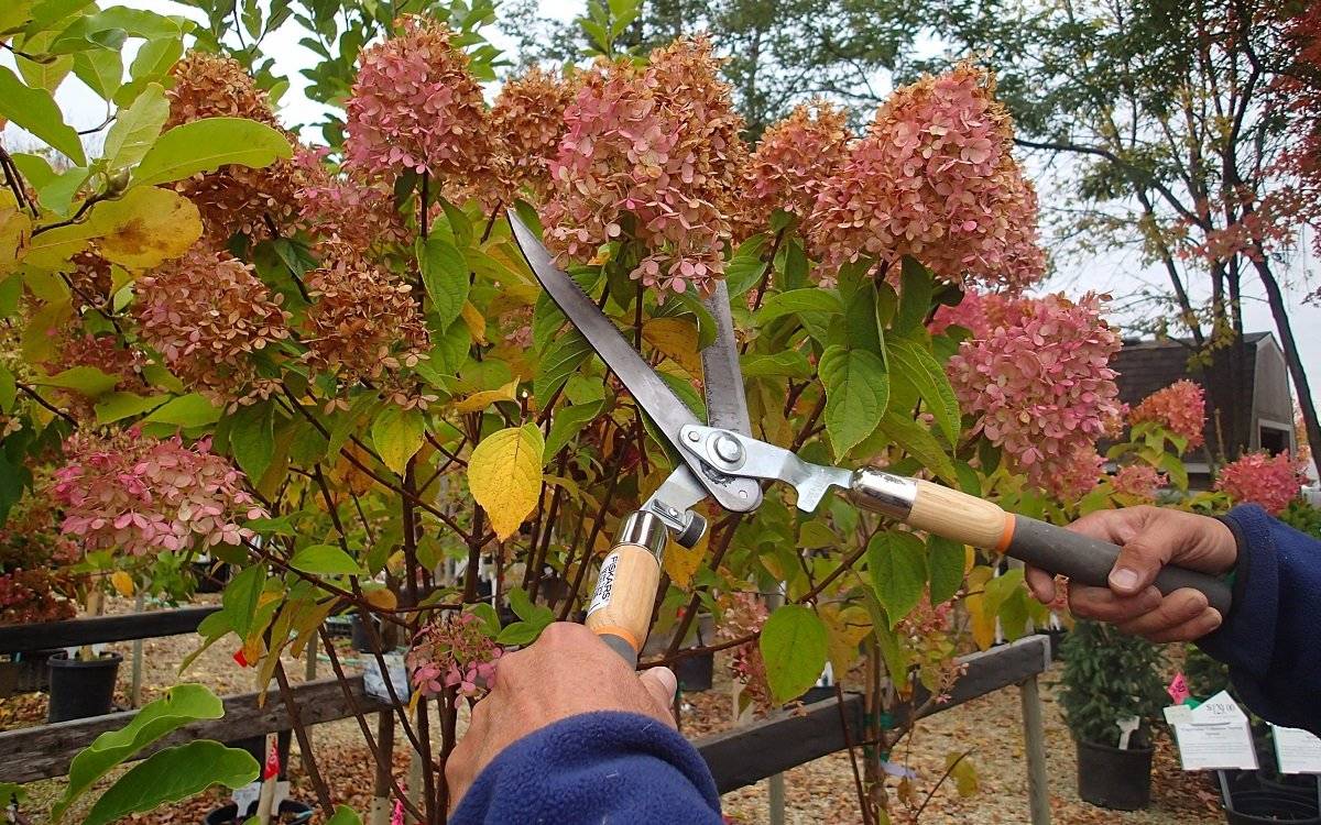 След цъфтежа на хортензията е време да се подготвите за студеното време. Необходимо е да се направи есенна превръзка, която ще помогне на храста да замине за зимата. Приложените торове ще укрепят състоянието на хортензията и ще положат вегетативни и цветни пъпки за бъдещ растеж и цъфтеж през следващата година. В почвата се внасят калиево-фосфорни торове. Количеството поливане намалява и спира в дъждовните дни. Ако има горещи дни през септември, тогава е задължително да поливате храста, така че растението да получи необходимата влага.